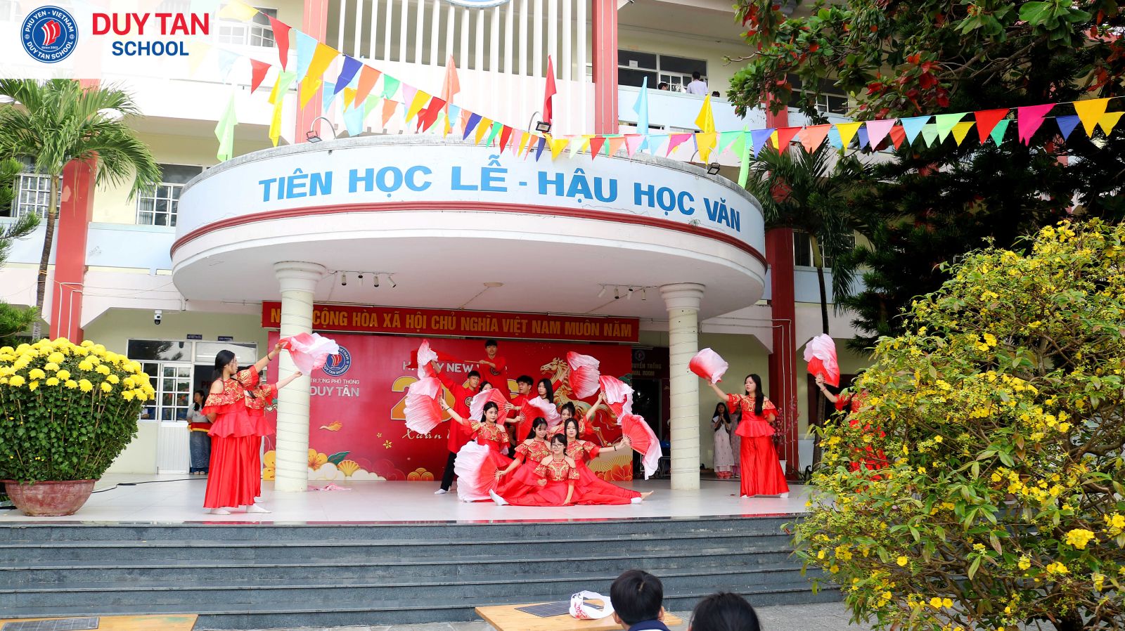 Xuân Bính Ngọ tại Duy Tân còn ngân vang qua những tiết mục hát múa mừng xuân tươi vui, rực rỡ sắc màu. Đặc biệt, chương trình lì xì – nét đẹp truyền thống trong phong tục Tết Việt – đã mang đến những khoảnh khắc ấm áp và đầy yêu thương. Những phong bao đỏ trao tay không chỉ gửi gắm lời chúc may mắn, mà còn chất chứa niềm tin và kỳ vọng cho một năm học thành công.