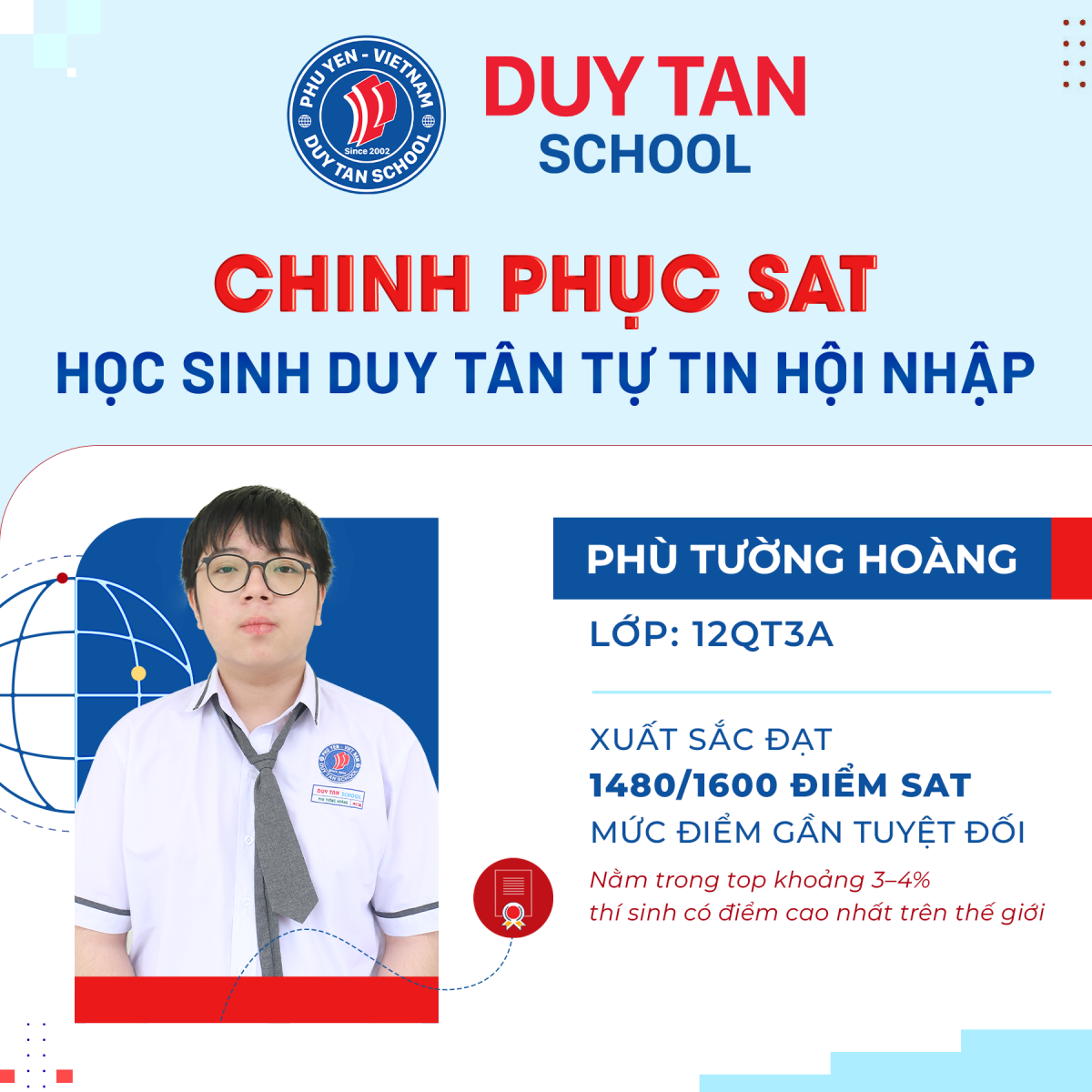 Minh chứng rõ nét cho định hướng đó là thành tích đáng tự hào của em Phù Tường Hoàng, học sinh của trường, khi xuất sắc đạt 1480/1600 điểm SAT – mức điểm gần tuyệt đối, nằm trong top khoảng 3-4% thí sinh có điểm cao nhất trên thế giới.