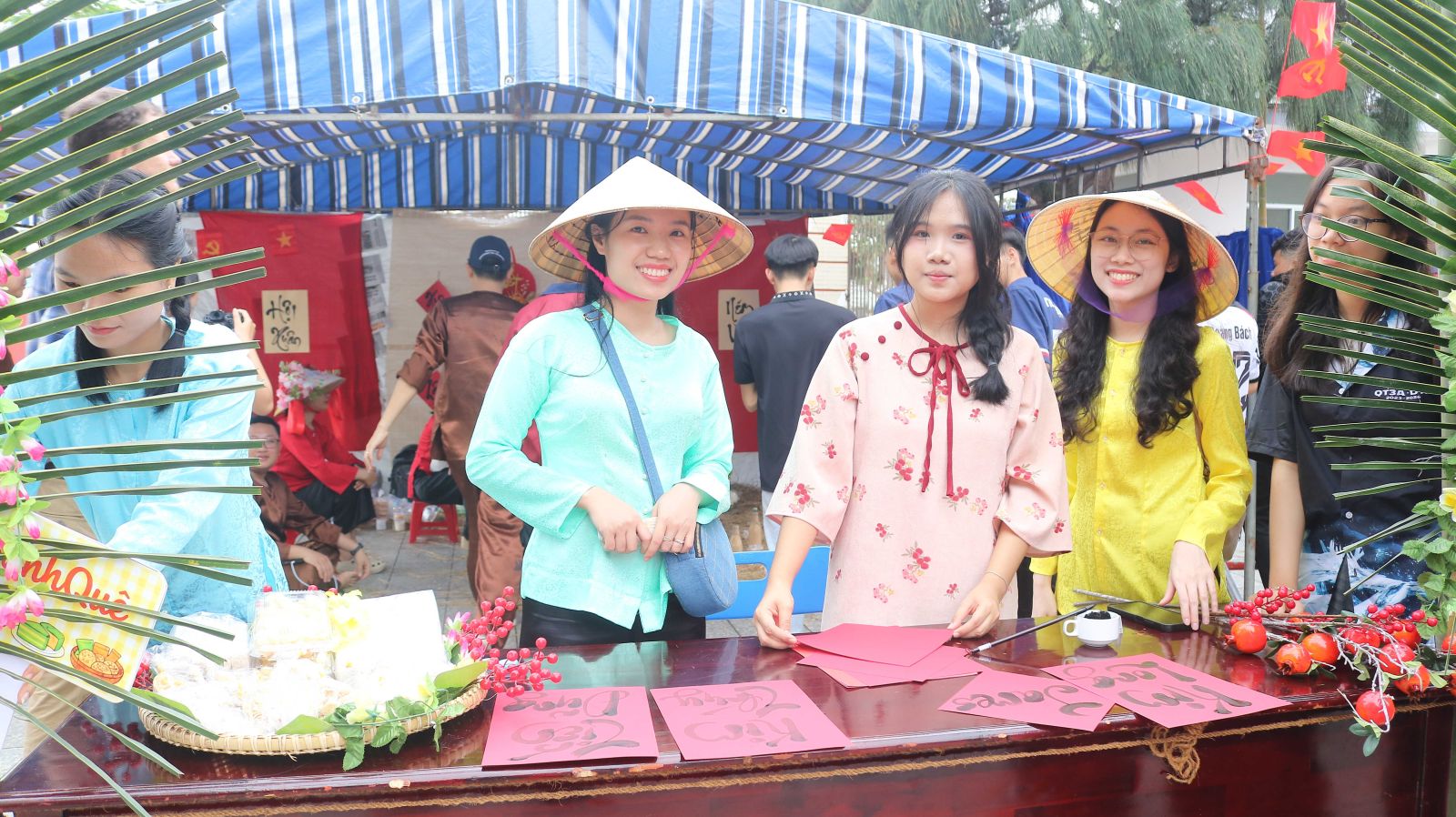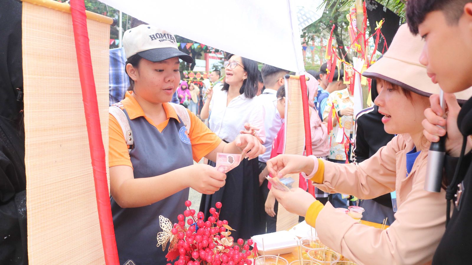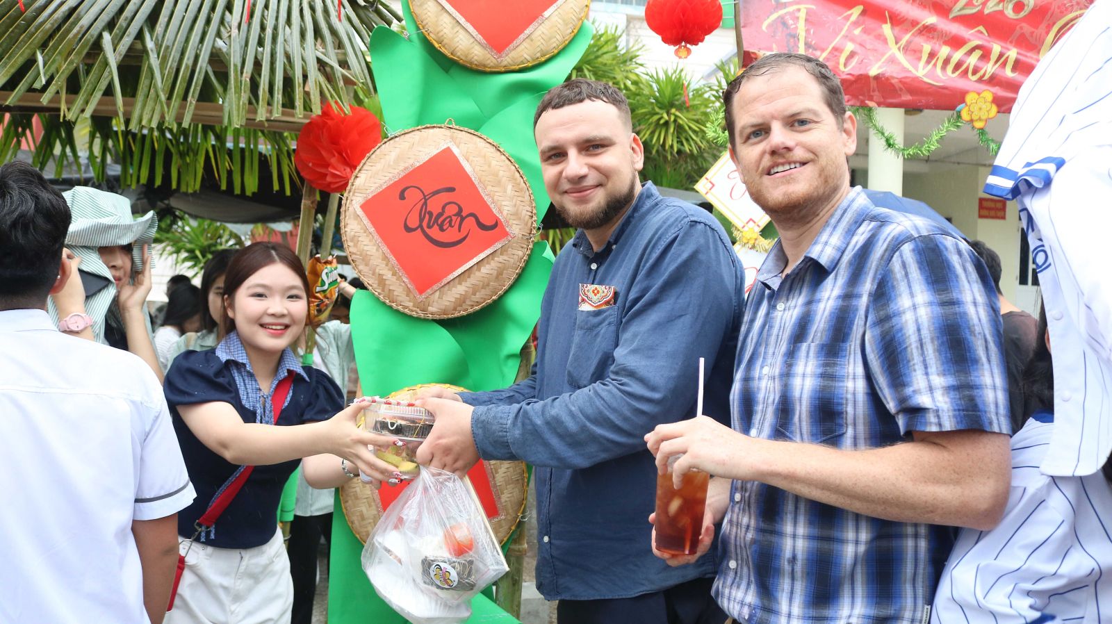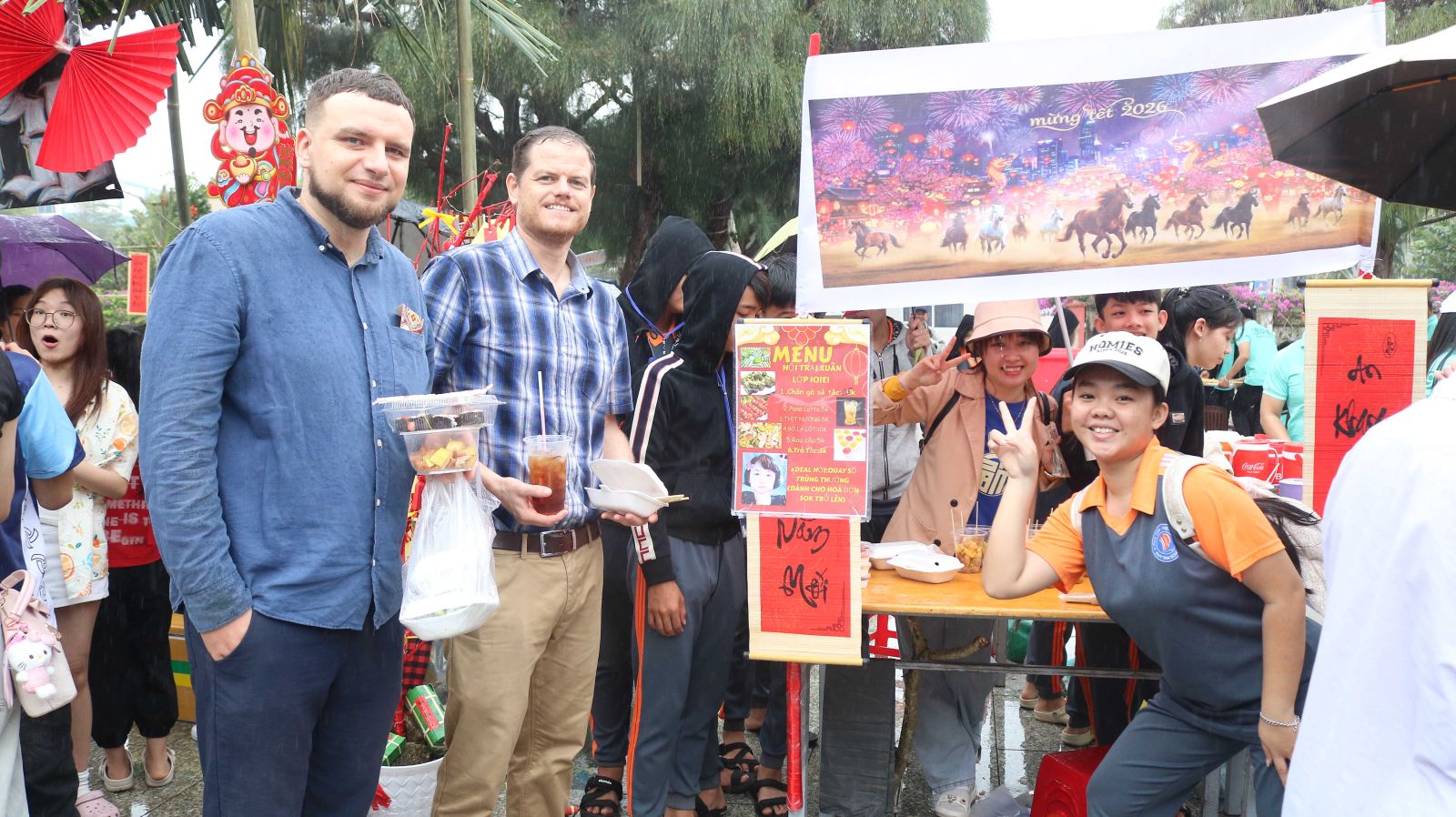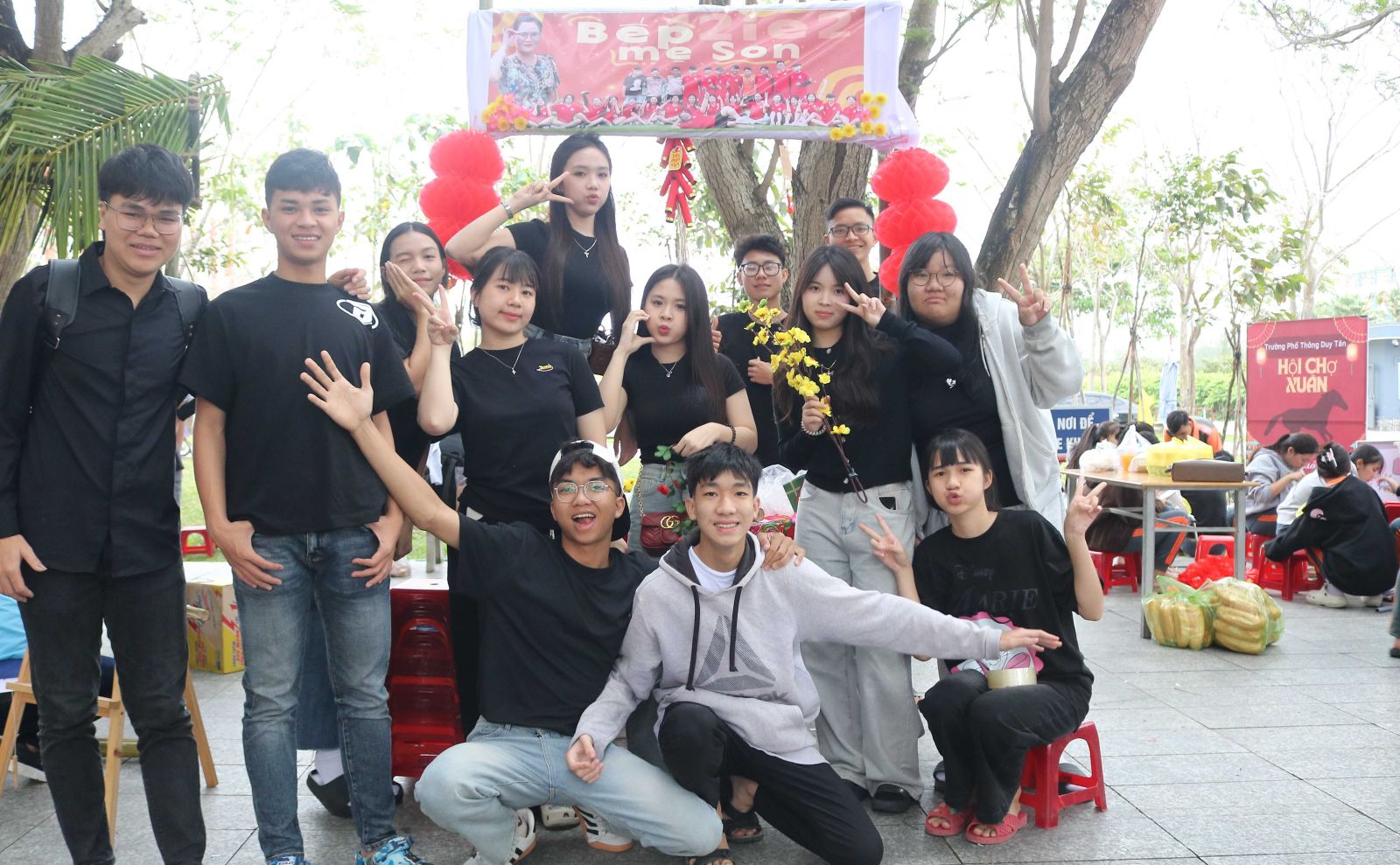 Lưu giữ những giây phút rộn ràng của Hội chợ Xuân Bính Ngọ 2026, thầy trò Trường Phổ thông Duy Tân đã cùng nhau tạo nên một không gian Tết gần gũi với thiên nhiên và đậm đà bản sắc. Những cổng gian hàng làm từ tàu dừa mộc mạc, từng bàn tay chung sức: người nhóm lửa, người chuẩn bị các món ăn ngày Tết – tất cả hòa quyện trong không khí ấm áp, thân thương.