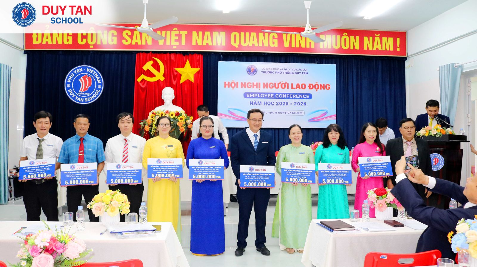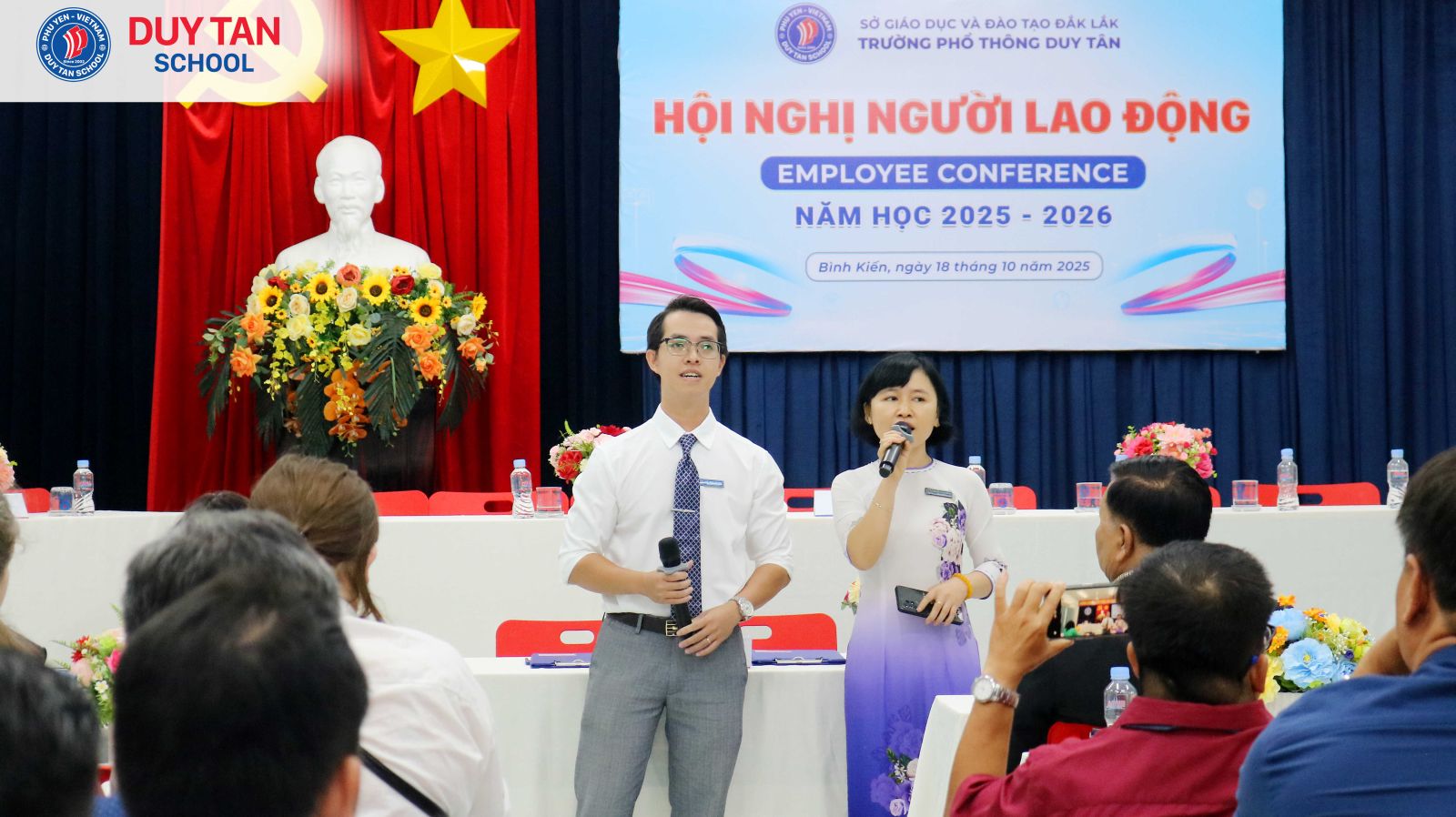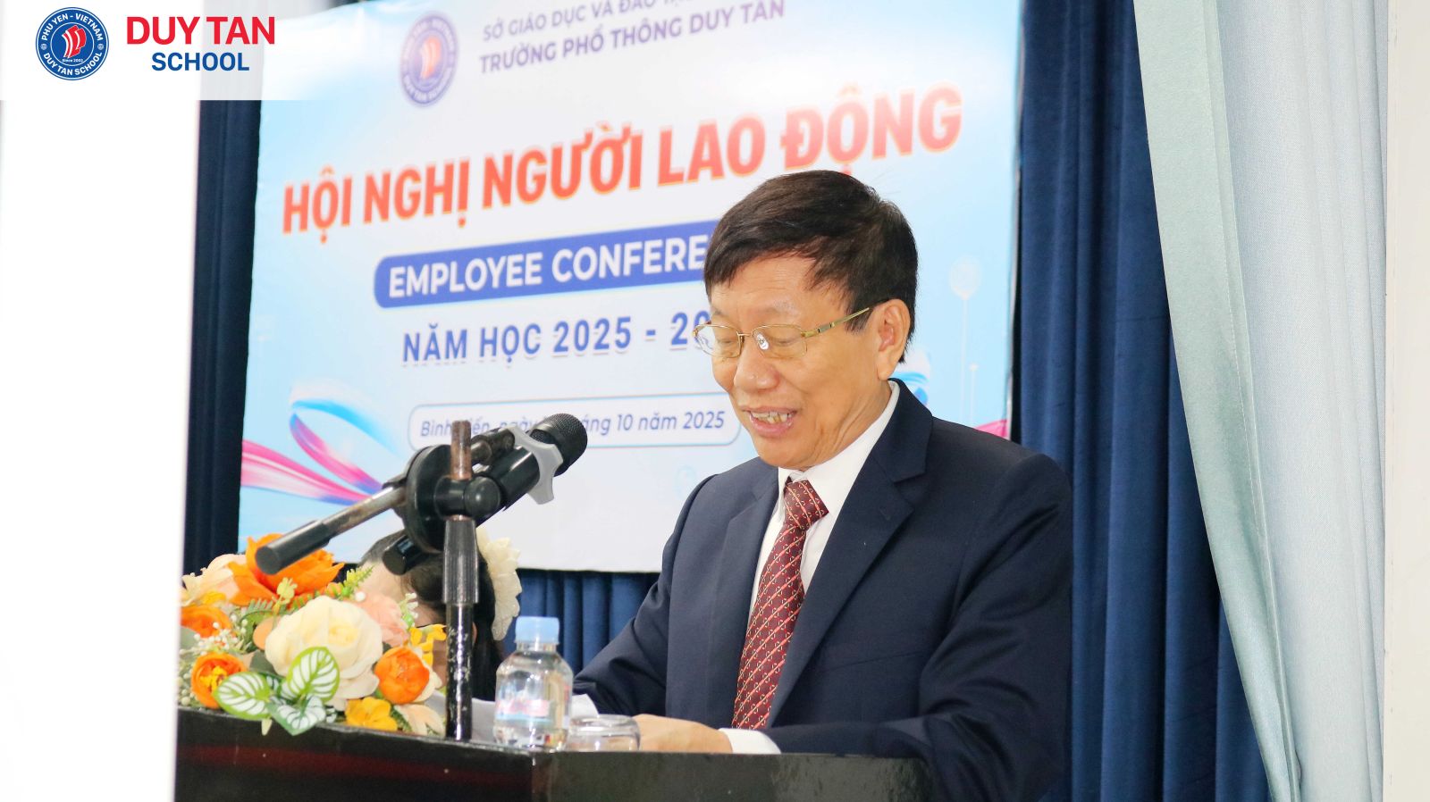 Sáng ngày 18/10/2025, Trường Phổ thông Duy Tân long trọng tổ chức Hội nghị Người lao động năm học 2025 – 2026 nhằm đánh giá kết quả hoạt động trong năm học vừa qua, đồng thời triển khai phương hướng, nhiệm vụ trọng tâm cho năm học mới.