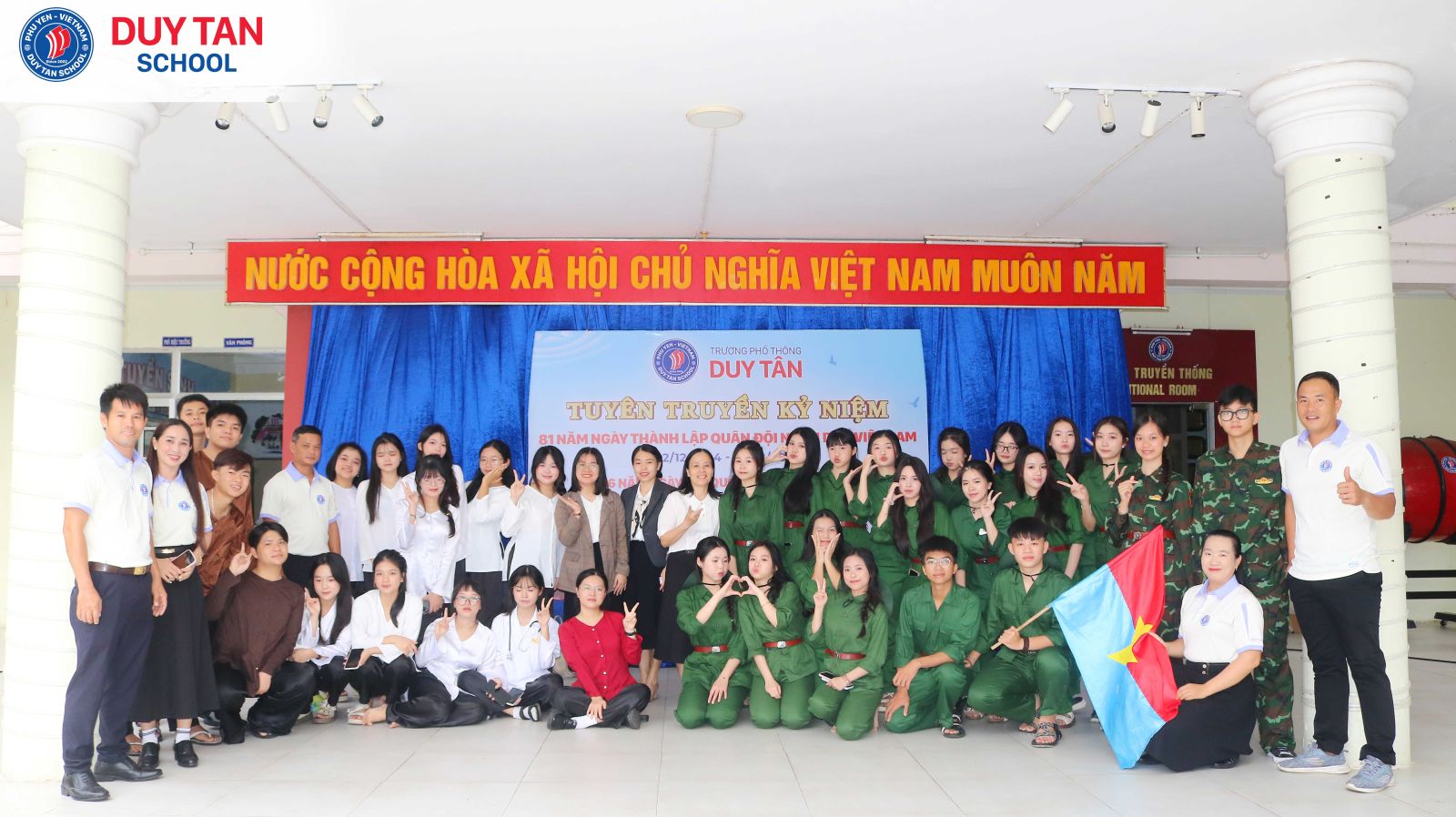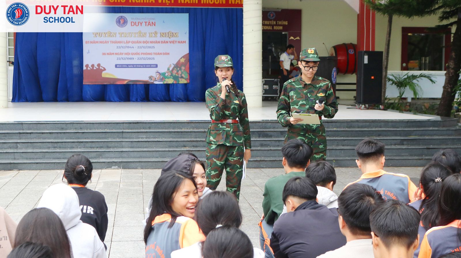 Trong không khí trang nghiêm và đầy tự hào, Trường Phổ thông Duy Tân đã tổ chức hoạt động tuyên truyền kỷ niệm 81 năm Ngày thành lập Quân đội Nhân dân Việt Nam (22/12/1944 - 22/12/2025) và 36 năm Ngày hội Quốc phòng toàn dân (22/12/1989 - 22/12/2025).