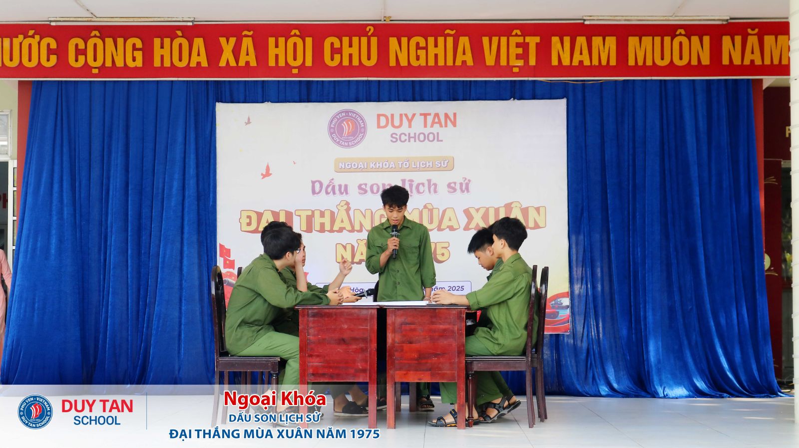 Hưởng ứng chuỗi hoạt động trọng điểm đang diễn ra tưng bừng trên khắp cả nước nhân dịp kỷ niệm 50 năm Ngày Giải phóng miền Nam (30/4/1975 – 30/4/2025), Tổ Lịch sử - Trường Phổ thông Duy Tân đã tổ chức buổi ngoại khóa với chủ đề “Dấu son lịch sử - Đại thắng mùa xuân 1975”. Chương trình nhằm mục đích giáo dục truyền thống yêu nước, bồi dưỡng lý tưởng cách mạng và khơi dậy niềm tự hào dân tộc trong thế hệ trẻ.