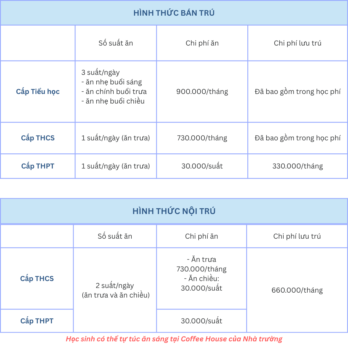 + Tiền ăn bán trú/nội trú.